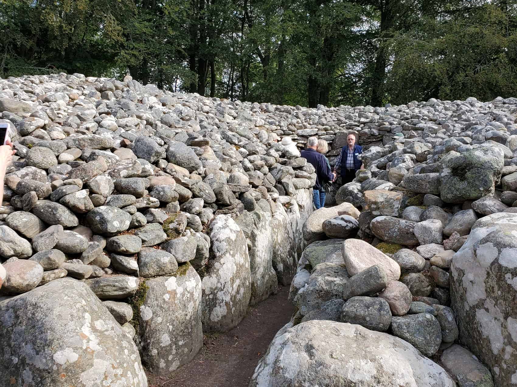 We drove north today. Our first stop was the prehistoric Clava Cairns, an important Neolithic archeological site, estimated to be 5,ooo years old. This site consists of three large cairns surrounded by standing stones. Set in a peaceful grove of trees, we pondered the mystery of this place and the people who worked so hard to build it, people who were early inhabitants of Scotland and possibly ancestors to some of us.
