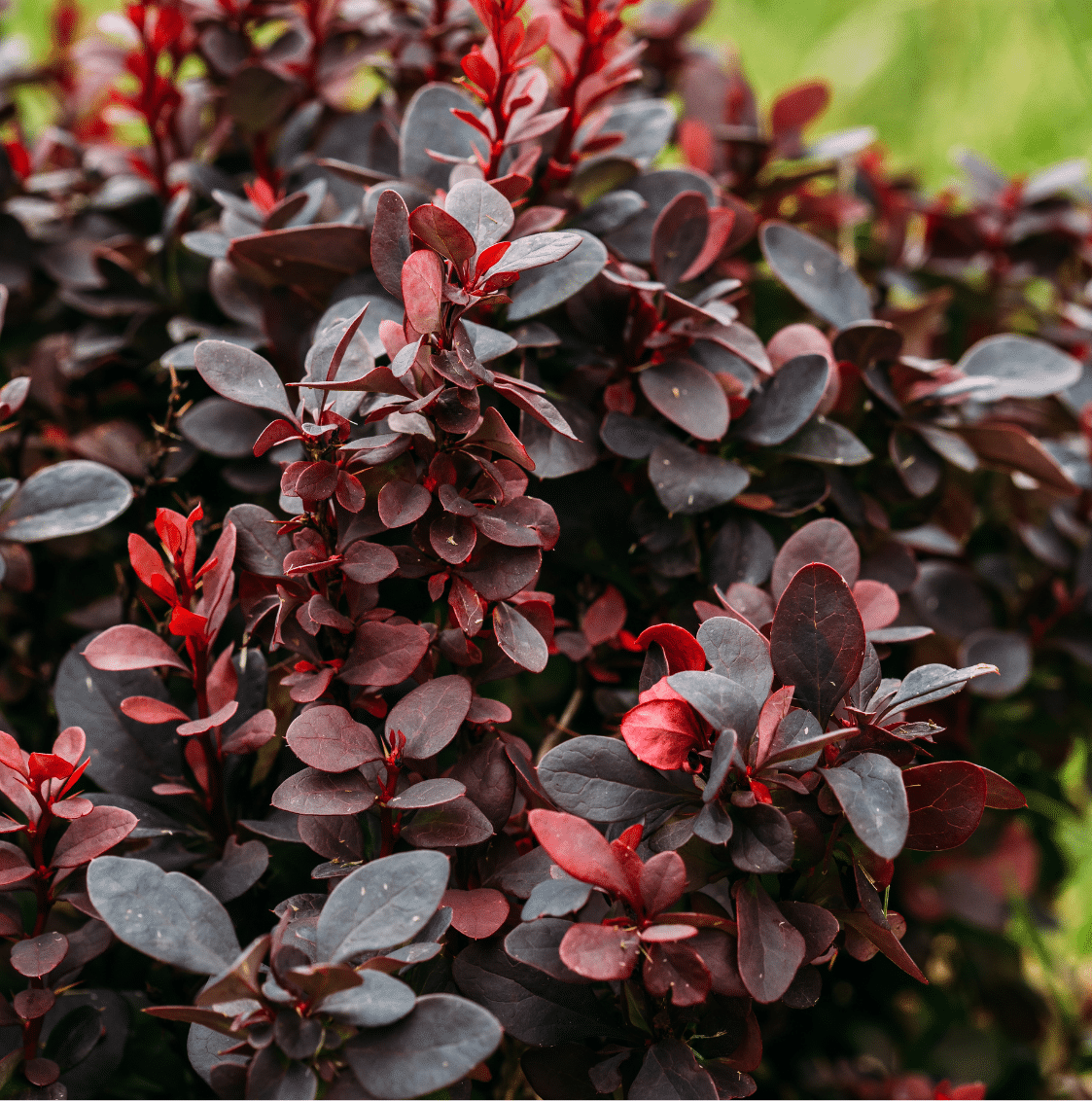 Crimson Pygmy – Deep red leaves in spring and summer turn fiery orange in fall. 2-3 ft tall and wide.