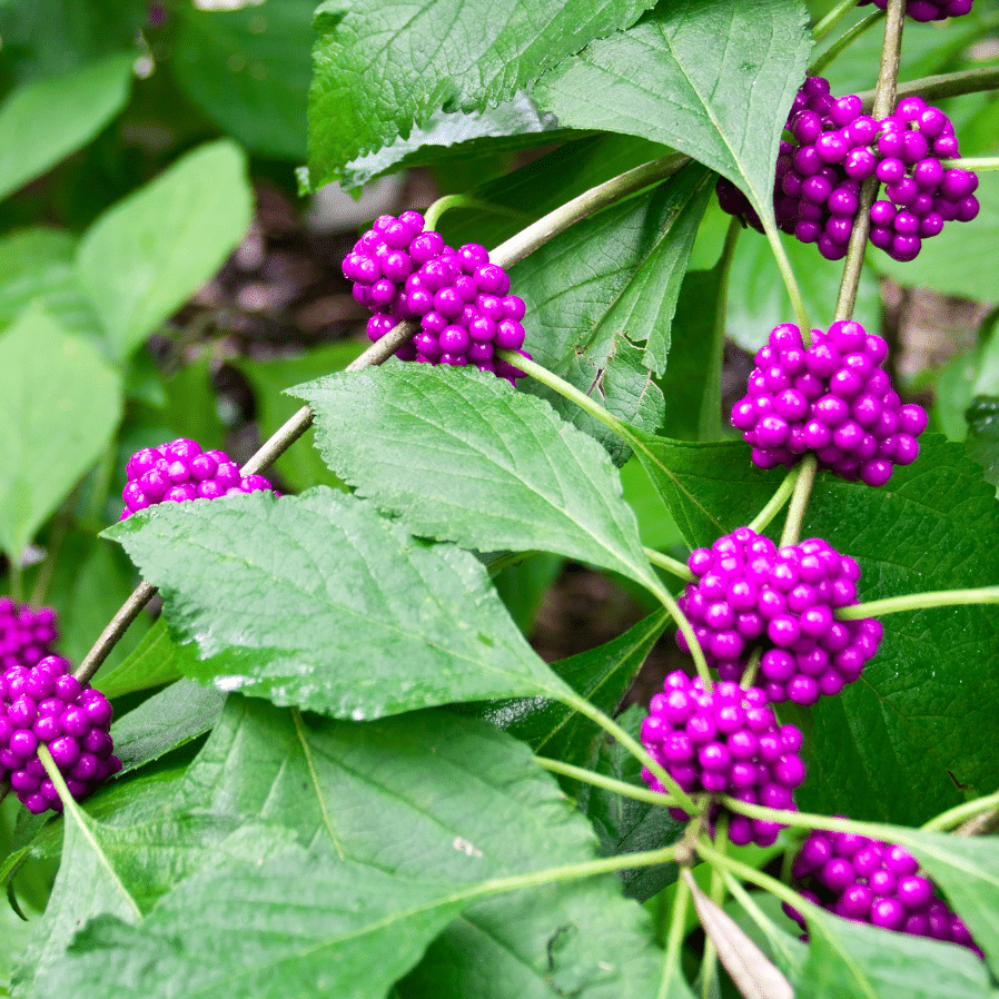 Beautyberry is a plant that certainly lives up to its name! They may not catch your eye early in the season, but come late summer Beautyberries are ready to take center stage. As other plants begin to fade, Beautyberries flaunt clusters of shining purple berries that stand out against the warm colors of the season. These berries last long after the leaves have fallen, attracting birds and adding color well into winter. The long, arching branches fit perfectly into naturalized gardens or woodland borders.