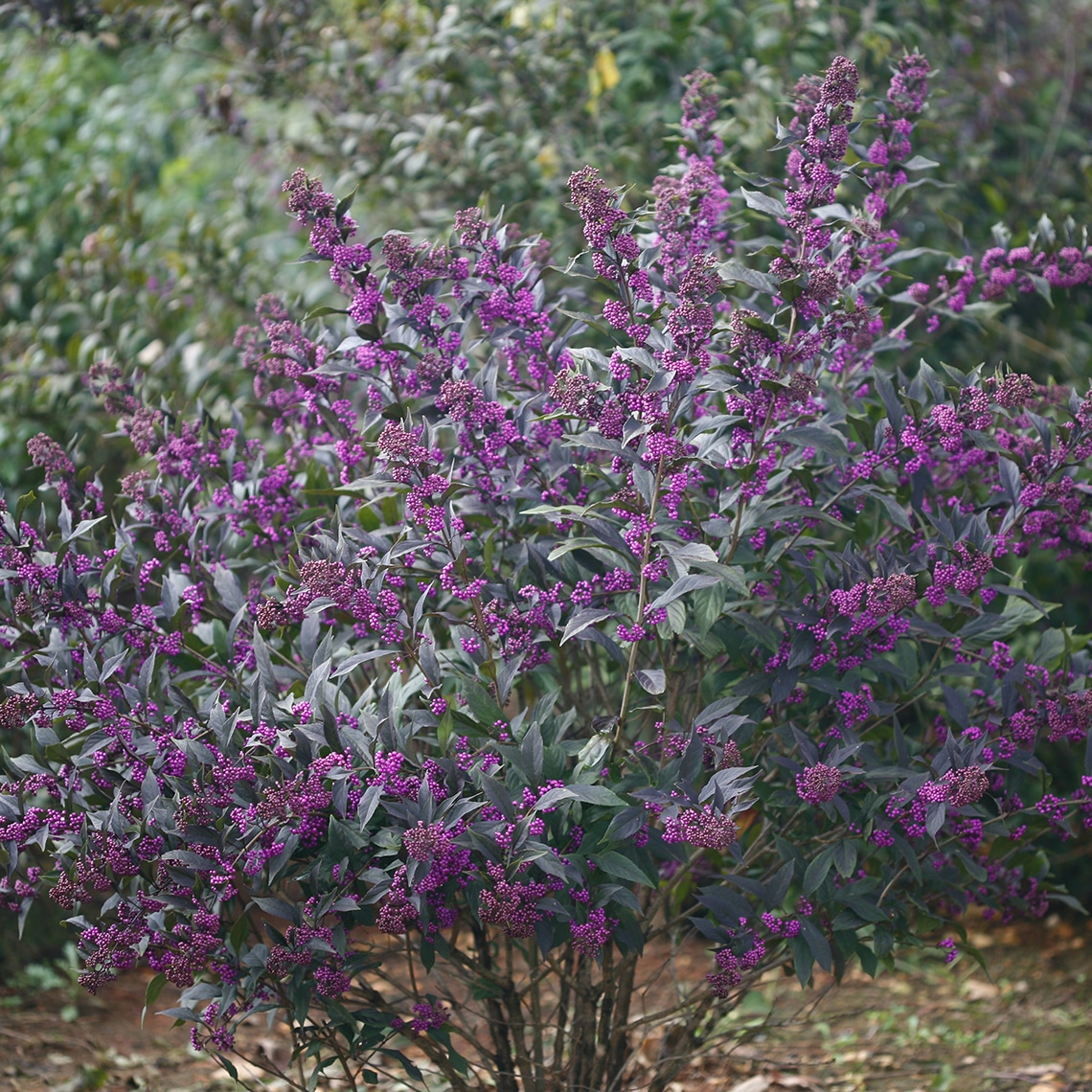 Profusion – Similar in appearance to the American Beautyberry, Profusion is a cultivar of the Chinese Beautyberry that is more compact and uniform in habit. 4-6 ft tall and wide.