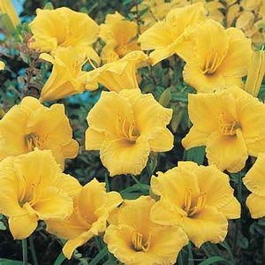 - Erin Lea – Large golden yellow blooms with frilly edges, rebloomer, 24″ tall