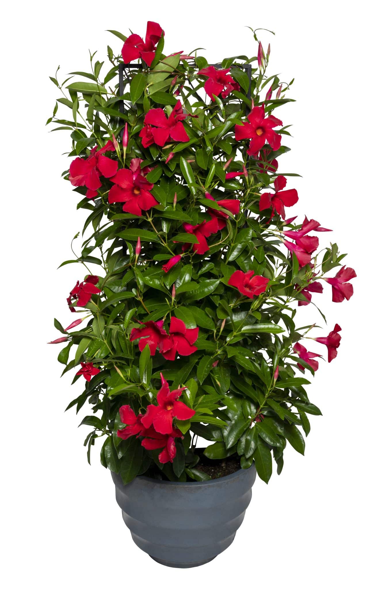 Sun Parasol Mandevillas from Suntory are large flowering tropical vines featuring superior branching and glossy dark green leaves. They are great for containers or baskets and have outstanding performance, blooming non-stop all spring and summer.